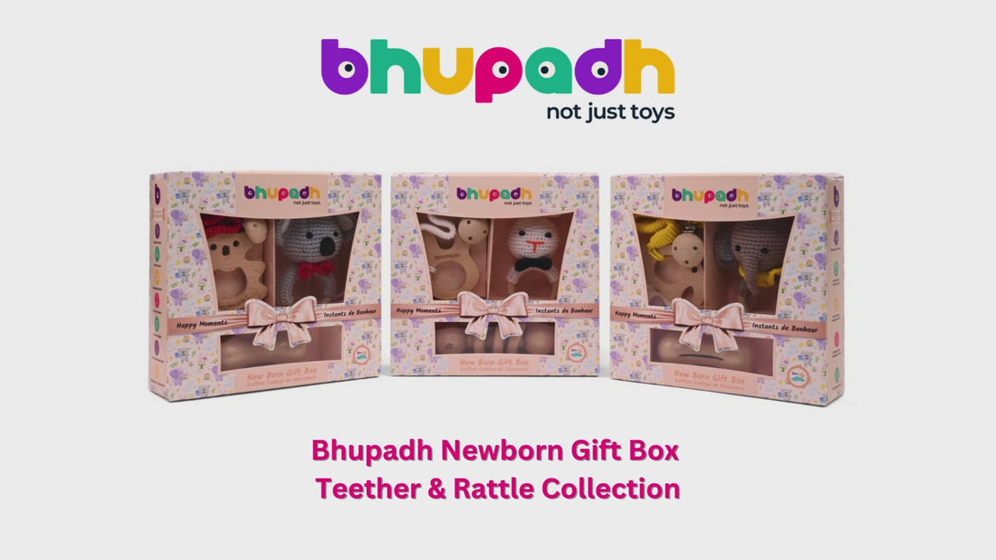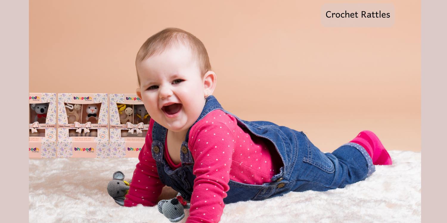 Celebrate a new arrival with our lovingly made gift set. It includes a soft crochet rattle to soothe your baby, a teething ring, and a natural wooden rattle for safe sensory play and motor development. A thoughtful, gentle gift to welcome a newborn into the world with care.
